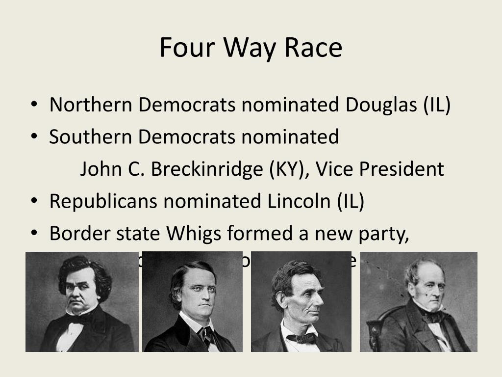 Candidates of the 1860 election. ^ freehling, william w., the road to disunion: Lincoln's election as president in 1860 ultimately led to the secession of. The tensions between the north and south were rising, ultimately due to the single issue of slavery. The united states presidential election of 1860 was perhaps the most.